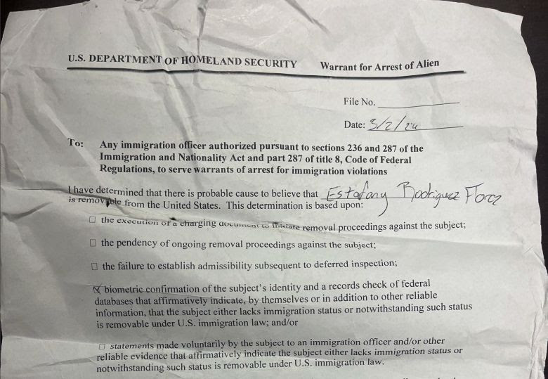 In a filing at noon Friday, lawyers for ICE “disputed Rodríguez’s claim that she was taken into custody without a warrant,” Mikeie Honda Reiland, Eden Turner and Araceli Crescencio reported for the Nashville Banner. “To support their claim, attorneys attached what appears to be an iPhone photo of a crumpled-up warrant dated March 2, with no file number and the Certificate of Service section left blank.