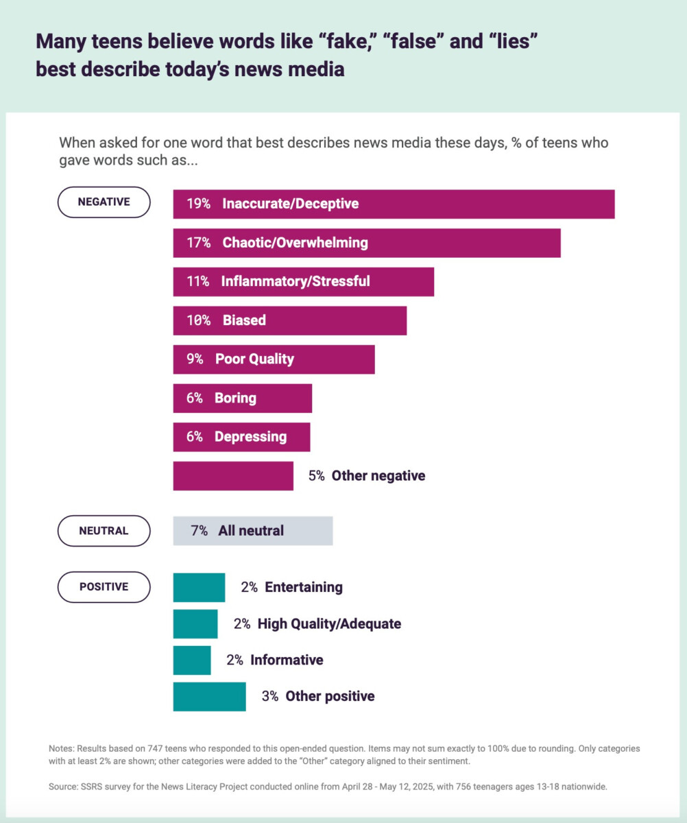 Meanwhile, a new report from the News Literacy Project that surveyed American teenagers about their attitudes toward journalists found, “About half of the teens surveyed believe that journalists frequently ‘make up details, such as quotes’ and ‘pay for sources.’