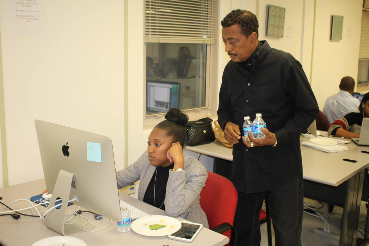 Ron Harris founded the Howard University News Service, which forwarded this photo of Harris advising a student during the 2014 elections.