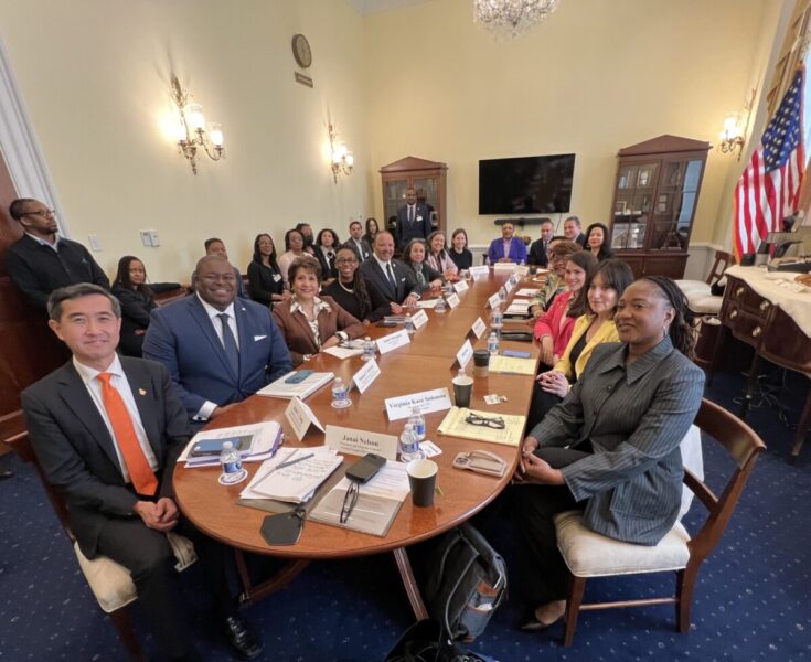 House Minority Leader Hakeem Jeffries, in rear at the head of the table, with Demand Diversity