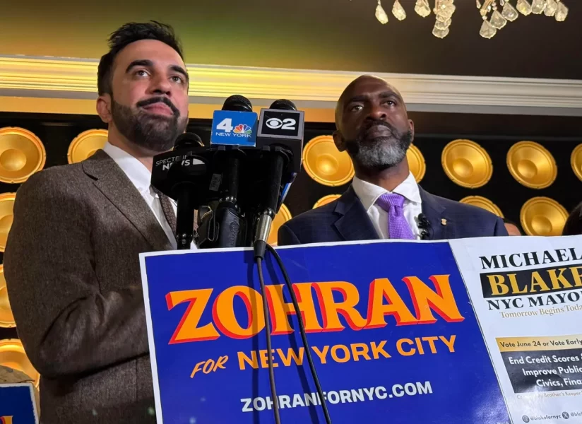 Mayoral candidates Assemblymember Zohran Mamdani, left, and former Assemblymember Michael Blake, right. (Credit: Raven Robinson/New York Amsterdam News)