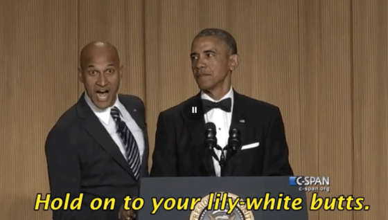 Homepage photo: In 2015, President Obama brought Luther, his “anger translator,” portrayed by comedian Keegan-Michael Key, with him to the White House Correspondents’ Dinner. P(Credit: C-SPAN screen shot)