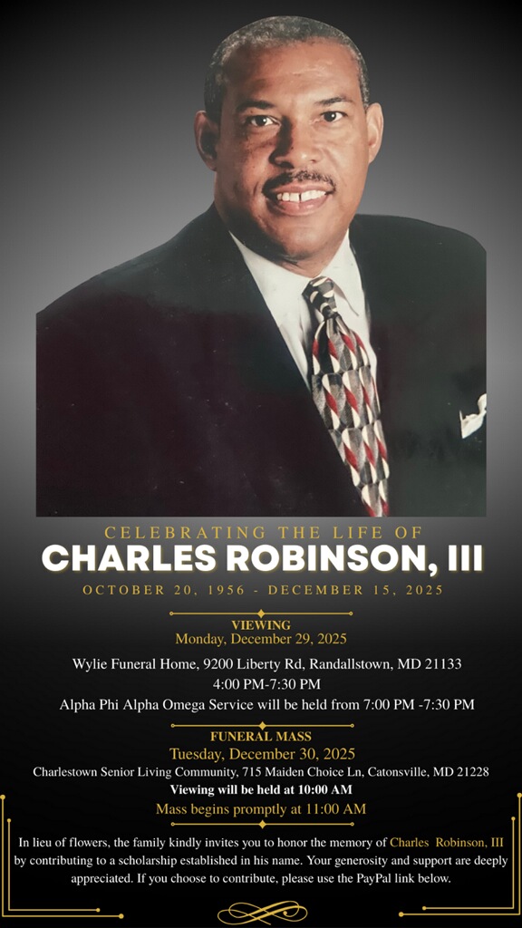 - Dec. 30 services have been announced for Charles Robinson III, the award-winning Maryland Public Television journalist who, according to Travis Mitchell, MPT senior vice president and chief content officer, died Dec. 15 at age 69 on his way to an interview.