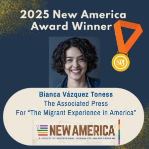 Bianca Vázquez Toness (pictured) of The Associated Press is the 2025 recipient of the Society of Professional Journalists’ New America Award, which recognizes public service journalism that explores and exposes issues affecting immigrant or ethnic communities in the United States, SPJ announced Aug. 22. In her reporting series “The Migrant Experience in America,” Vázquez Toness, who covers how the pandemic continues to affect young people and their education, documents the complex experiences of immigrant communities in Aurora, Colo.