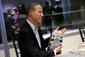 George Derek Musgrove, a historian who is studying Black political conventions and is co-author of “Chocolate City: A History of Race and Democracy in the Nation’s Capital.” He spoke at our 2017 holiday party at the Newseum. (Credit: Sharon Farmer/sfphotoworks).