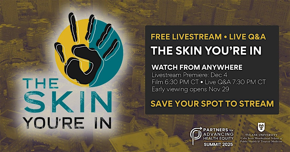A free virtual screening of “The Skin You’re In”, a documentary addressing why Black Americans live sicker and die younger than others.