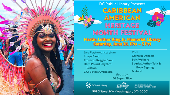 Join us for an unforgettable day filled with music, dance, food, art, and storytelling that honors the vibrant Caribbean-American community in the District and beyond. Visit the Martin Luther King Jr. Memorial Library on Saturday, June 28 from 1 p.m. – 5 p.m. and enjoy: